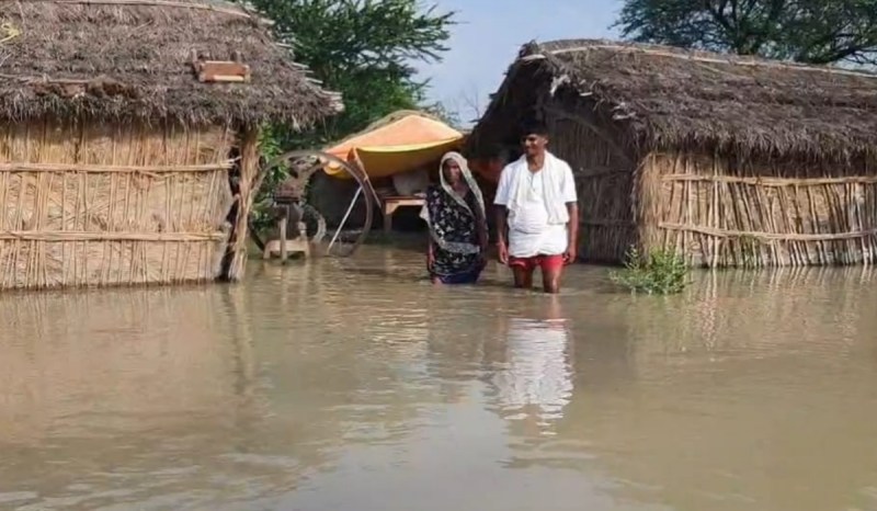 Gonda Flood: नेपाल के पहाड़ों पर लगातार हो रही बारिश और बैराजों से पानी छोड़े जाने के बाद घाघरा नदी का जलस्तर बढ़कर 83 सेंटीमीटर पहुंच गया था। जलस्तर बढ़ने से कर्नलगंज और तरबगंज तहसील के 36 गांव में बाढ़ का पानी घुस जाने के बाद घाघरा सब कुछ निगल गई। कुछ गांव में लोग छतों पर खाना बना रहे हैं। हालांकि घाघरा का जलस्तर मंगलवार को तेजी से घटने लगा है। बुधवार की सुबह केंद्रीय जल आयोग की रिपोर्ट के मुताबिक खतरे के निशान से 83 सेंटीमीटर ऊपर बह रही घाघरा अब 36 सेंटीमीटर ऊपर बह रही हैं। जलस्तर में गिरावट के बाद भी ग्रामीणों की दुश्वारियां कम होने का नाम नहीं ले रही हैं। मंगलवार को एक युवक की बाढ़ के पानी में डूब कर मौत हो गई।