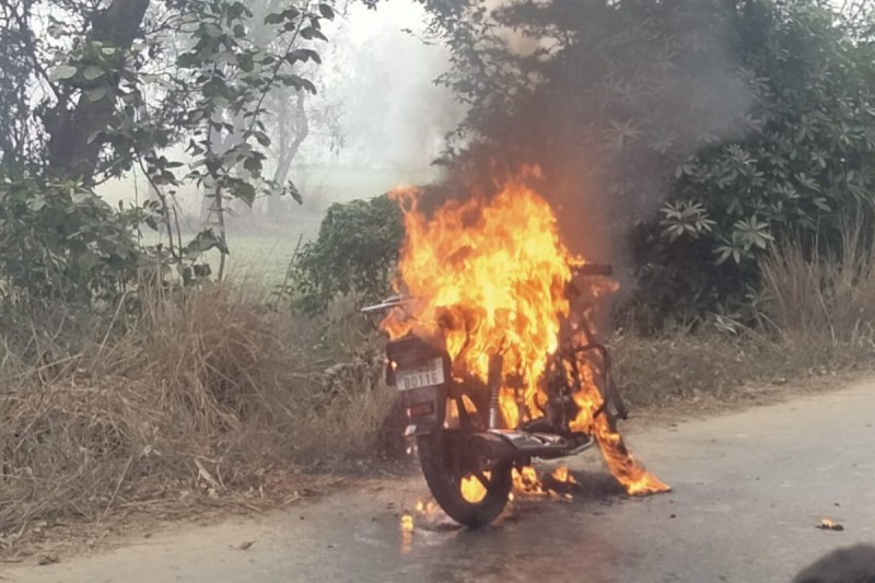 बताया जाता है कि एक इंटर कॉलेज के पास किसी काम के लिए वह थोड़ी देर बाइक खड़ी कर चले गए। कुछ ही मिनट में वापस लौट कर जैसे ही बाइक में सेल्फ लगाया। गाड़ी से धुआं निकलने लगा। पिता पुत्र उतरकर जैसे ही अलग खड़े हुए गाड़ी तेज आग की लपटों के साथ जलने लगी। जब तक आसपास के लोग वहां पर पहुंचते तब तक पूरी गाड़ी जलकर खाक हो गई। गनीमत रही कि इस घटना में कोई जनहानि नहीं हुई। इसके बाद पिता पुत्र किसी दूसरे साधन से अपने घर वापस लौट गए।