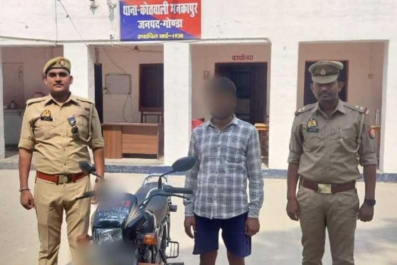 Gonda News: गोंडा जिले की मनकापुर कोतवाली पुलिस रविवार को समय माता के पास वन निगम मार्ग पर वाहन की चेकिंग कर रही थी। इसी दौरान एक संदिग्ध व्यक्ति को फर्जी नंबर प्लेट लगी। मोटरसाइकिल के साथ रोका। उसने पुलिस को देखकर भागने का प्रयास किया। लेकिन पुलिस ने उसे रोक लिया। पुलिस को पूछताछ के दौरान पता चला कि वह कोतवाली क्षेत्र के कोल्हारगांव पचपुती जगतापुर का रहने वाला है। उसने अपना नाम अमर सिंह उर्फ प्रिंस पुत्र दुर्गा सिंह बताया पुलिस ने बाइक के कागज की मांग किया तो वह कोई संतोषजनक जवाब नहीं दे पाया।