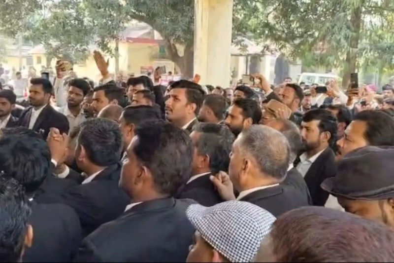 एसपी ऑफिस पर प्रदर्शन करते अधिवक्ता फोटो सोर्स पत्रिका