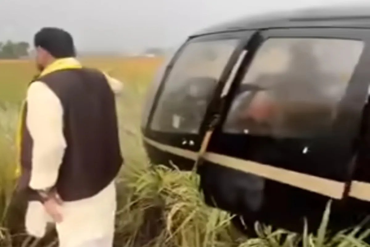 खेत में हेलीकॉप्टर की इमरजेंसी लैंडिंग फोटो सोर्स वायरल वीडियो के स्क्रीनशॉट से