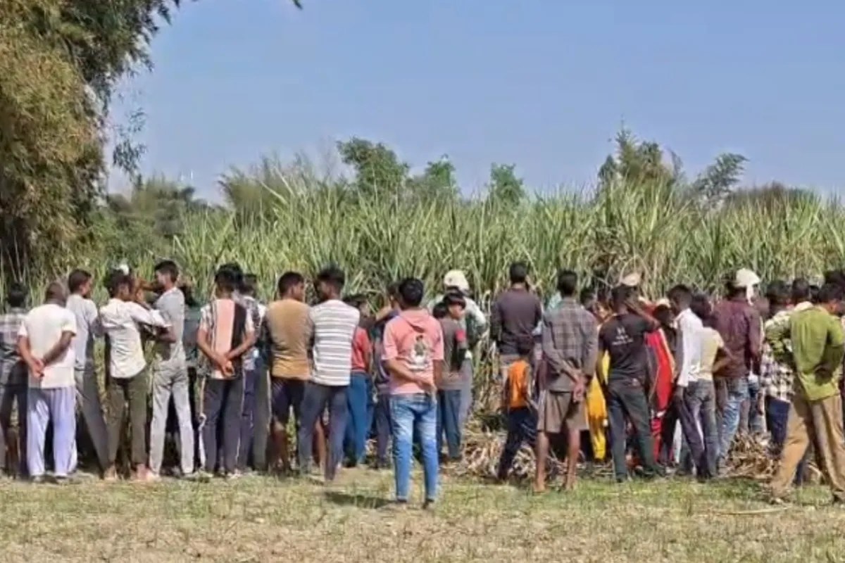 गन्ने के खेत में युवती का शव मौके पर जुटे लोग फोटो सोर्स पत्रिका