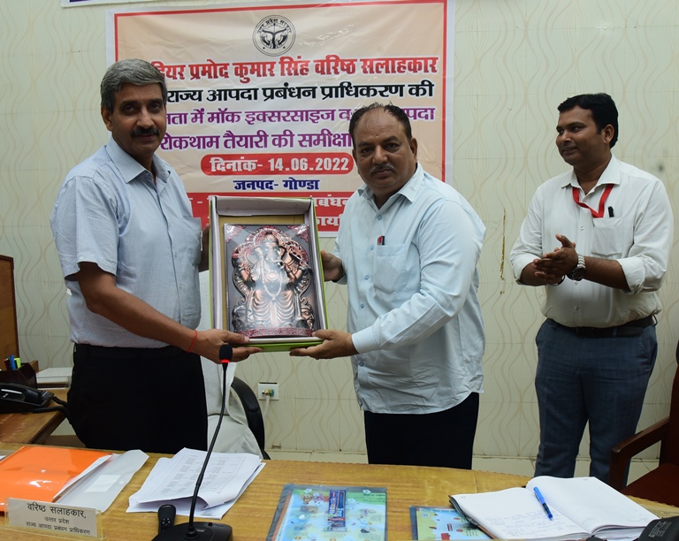 उन्होंने अधिकारियों को बताया कि विगत तीन वर्षों में प्रदेश में वज्रपात से 1100 से अधिक लोगों की मृत्यु हो चुकी है। उन्होंने कहा कि वज्रपात से होने वाली घटनाओं में हम बड़े पैमाने पर कमी ला सकते हैं। उन्होंने सभी अधिकारियों से अपील किया कि वे सब स्वयं अपने मोबाइल में वज्रपात की सूचना देने वाले महतपूर्ण दामिनी एप को डाउनलोड करें तथा कि अपने अधनीस्थ सभी कर्मचारियों के साथ-साथ जनसामान्य के मोबाइल में यह एप जरूर डाउनलोड कराएं। उन्होंने बताया कि दामिनी एप वज्रपात की सटीक सूचना उपलब्ध कराता है, इसलिए इस एप का व्यापक प्रचार-प्रसार भी कराएं जिससे वज्रपात से होने वाली मृत्यु में कमी लाई जा सके। बैठक में उन्होंने बताया कि शासनपके निर्देशन में आगामी जुलाई माह में बाढ़ से बचाव के लिए प्रदेश स्तरीय मॉक ड्रिल कराई जाएगी। बैठक में अपर जिलाधिकारी, सीएमओ तथा एएसपी द्वारा स्मृति चिन्ह देकर ब्र्रिगेडियर प्रमोद कुमार सिंह को सम्मानित किया गया।