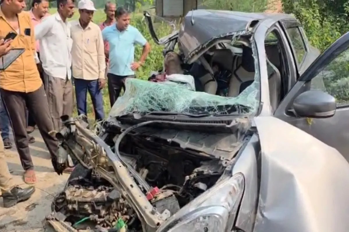 टक्कर के बाद दुर्घटनाग्रस्त कार