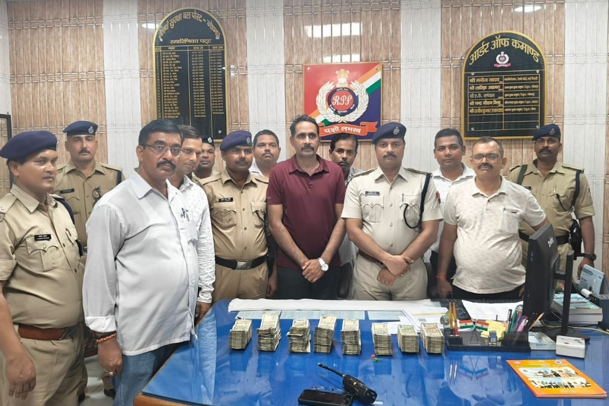 बरामद रुपये के साथ पुलिस टीम फोटो सोर्स रेल जनसंपर्क विभाग
