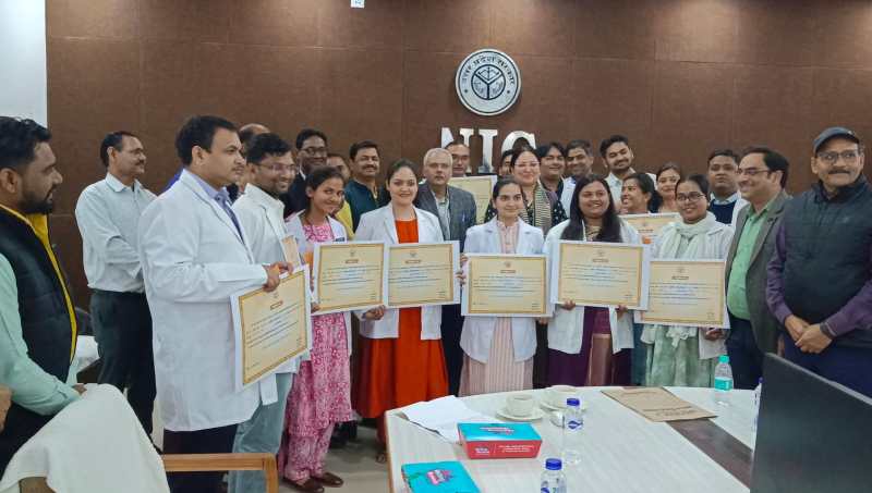 योगी सरकार के निर्देश पर रविवार को गोंडा के निक में जिले के 14 नवनियुक्त आयुर्वेद चिकित्सा अधिकारियों को जिला पंचायत अध्यक्ष एवं आयुक्त देवीपाटन मंडल योगेश्वर राम मिश्र तथा जिलाधिकारी नेहा शर्मा ने नियुक्ति पत्र वितरित किया। इसके साथ ही प्रदेश के सभी 18 मण्डलों में सन्दर्भित पद चिकित्साधिकारी आयुर्वेद के 611 पदों के लिए सितम्बर 2022 में जारी हुये विज्ञापन के बाद विभिन्न चरणों में परीक्षा प्रक्रिया क्रमानुसार लिखित परीक्षा 08 जनवरी, इन्टरव्यू 19 सितम्बर 2023 एवं चिकित्सीय परीक्षण 20 जनवरी से 26 जनवरी 2024 के बीच सम्पन्न हुयी। जिसमें परीक्षा के बाद कुल 611 पदों के सापेक्ष चयनित कुल 392 अभ्यर्थियों नियुक्ति पत्र वितरण कार्यक्रम प्रदेश के मण्डलों में आयोजित किया गया। जिसमें से 18 मण्डलों में से 3 मण्डल वाराणसी, कानपुर, लखनऊ मण्डल के चयनित अभ्यर्थियों का नियुक्ति पत्र वितरण समय 11-12 बजे के बीच लोक भवन, लखनऊ में मुख्यमंत्री योगी आदित्यनाथ ने वितरित किया गया। जिसका लाइव प्रसारण प्रदेश के शेष सभी 15 मण्डलों में देखा गया। इसके साथ ही प्रमुख सचिव आयुष उ०प्र० शासन, लखनऊ के आदेशानुसार हमारे देवीपाटन मण्डल में चयनित कुल 14 अभ्यर्थियों का नियुक्ति पत्र वितरण कार्यक्रम आयोजित किया गया। नियुक्ति पत्र वितरण समारोह में प्रमुख रूप से अपर मुख्य चिकित्सा अधिकारी डॉक्टर आदित्य वर्मा, प्रोफेसर डॉ आरवी यादव नोडल अधिकारी, डॉ अरुण कुमार कुरील क्षेत्रीय आयुर्वेदिक एवं यूनानी अधिकारी गोंडा, डॉ दिग्विजय नाथ क्षेत्रीय आयुर्वेदिक एवं यूनानी अधिकारी बलरामपुर, डॉ रंजन क्षेत्रीय आयुर्वेदिक एवं यूनानी अधिकारी बहराइच, श्रावस्ती, ओम प्रकाश सिंह, आदर्श मिश्रा, सुधांशु द्विवेदी सहित विभाग के सभी अधिकारी और कर्मचारीगण उपस्थित रहे।