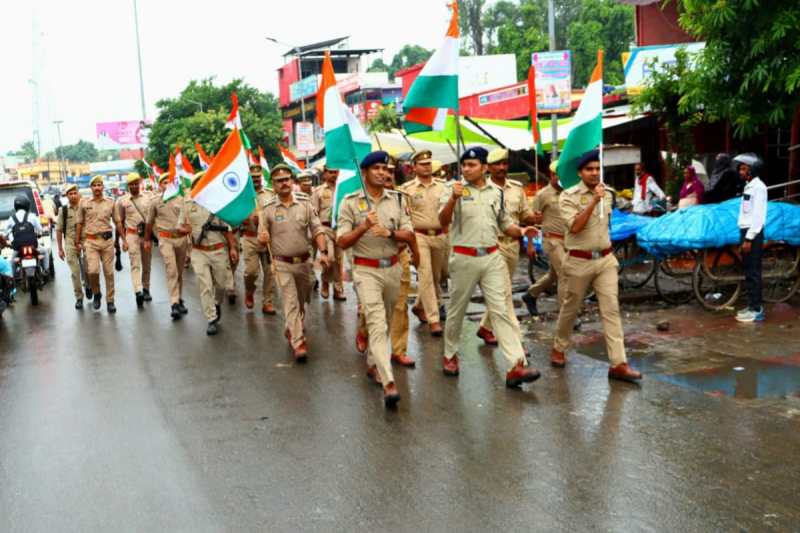 यूपी के गोंडा जिले में 78वें स्वतंत्रता दिवस के उपलक्ष्य में मनाए जा रहे "हर घर तिरंगा अभियान" के अवसर पर बुधवार को गोंडा पुलिस ने शहर में तिरंगा पद यात्रा निकाली। एसपी विनीत जायसवाल के नेतृत्व में पुलिस बल ने शहर के कई प्रमुख चौराहों का भ्रमण कर लोगों को राष्ट्र प्रेम का संदेश दिया।