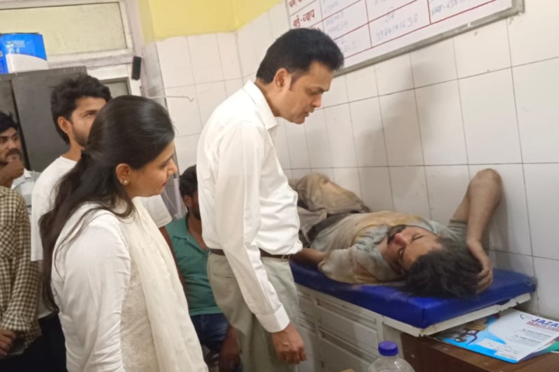 घायल श्रमिकों का हाल-चाल लेते आयुक्त देवीपाटन मंडल फोटो सोर्स पत्रिका