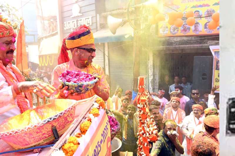 सीएम योगी ने हिंदी बाजार में आयोजित RSS के कार्यक्रम के दौरान होली खेली।सीएम ने अपने सोशल मीडिया हैंडल पर होली खेलने की कुछ खास तस्वीरें भी शेयर कीं।उन्होंने तस्वीरें शेयर कर लिखा- होली का है एक संदेश- 'एकता से ही अखंड रहेगा देश। सीएम ने लिखा- रंग, उमंग, उत्साह वाली होली समता, समरसता, सौहार्द वाली होली असत्य पर सत्य की विजय की होली।मुख्यमंत्री ने लिखा- प्रदेश वासियों को 'रंगोत्सव' की पुनश्च शुभकामनाएं!