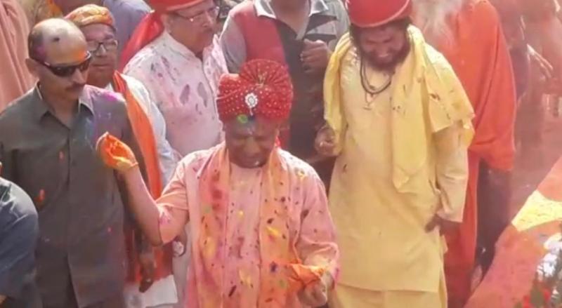 सबसे पहले मुख्यमंत्री योगी आदित्यनाथ ने मंदिर परिसर में साधु संतों व श्रद्धालुओं के साथ होलिका दहन केबाद राख की पूजा अर्चना की। सम्मत की राख को उड़ाकर होली की शुरूआत की। फिर इस धूल को माथे पर लगाकर एक दूसरे को बधाई दी गई।