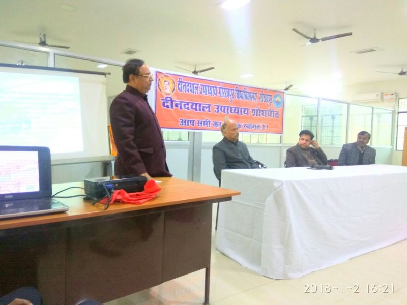 गोरखपुर। दीनदयाल उपाध्याय के विचारों और सिद्धांतों को गांव-गांव पहुंचाने में डीडीयू का दीनदयाल उपाध्याय शोध पीठ अभियान चलाएगा। शोध पीठ के द्वारा सामाजिक कुरीतियों के खिलाफ भी लोगों को जागरूक किया जाएगा। दीनदयाल उपाध्याय के विचारों व सिद्धांतों को धरातल पर उतारना शोध पीठ का उद्देश्य होना चाहिए। दीनदयाल जी के विकास की संकल्पना में समाज के अंतिम पायदान पर खड़ा व्यक्ति केन्द्र में रहा है, उसी तरह शोध पीठ भी यही केन्द्र मानकर काम करेगी।