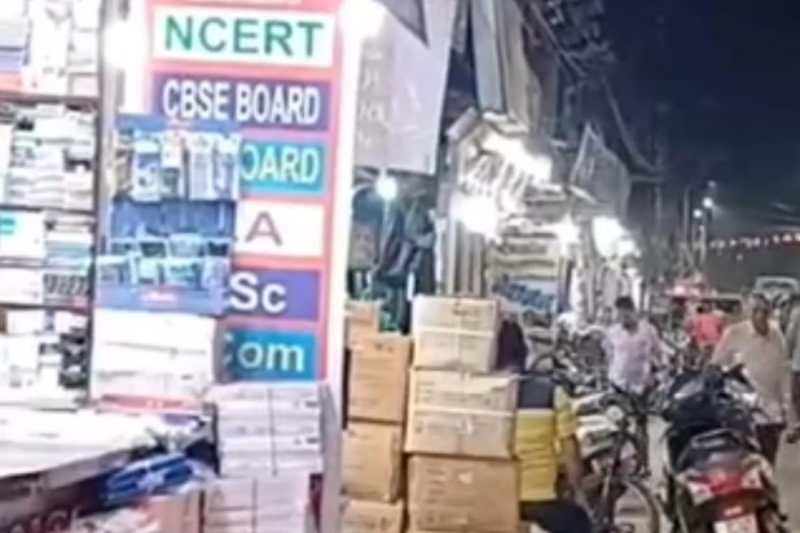 बक्शीपुर बुक मार्केट में छापा पड़ते ही अफरा-तफरी मच गई।