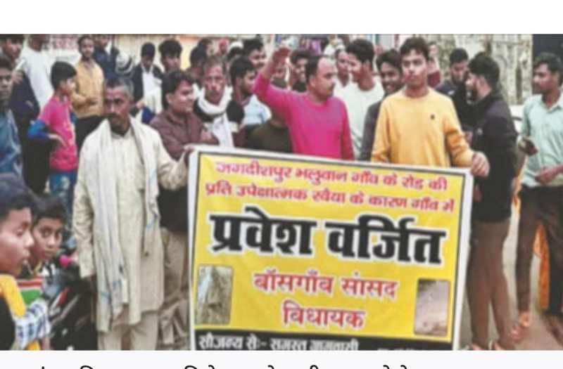 गुरुवार शाम ग्रामीणों ने बांसगांव विधानसभा क्षेत्र के अंतर्गत गगहा क्षेत्र के जगदीशपुर भलुवान गांव में भाजपा विधायक विमलेश पासवान और उनके भाई सांसद कमलेश पासवान के प्रवेश को प्रतिबंधित करने वाले पोस्टर को लेकर भगवान चौराहे पर प्रदर्शन किया। ग्रामीण हाथ में बकायदा टूटी सड़कों की तस्वीर वाले पोस्टर और फ्लैक्स लिए रहे।