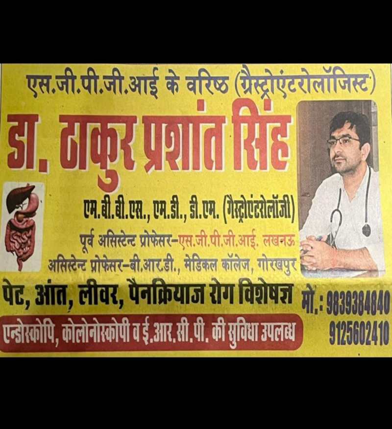 इस प्राइवेट प्रैक्टिस करने के सबूत के रूप में एक विज्ञापन की प्रति भी प्रेषित की है। जिसमें डॉ. ठाकुर प्रशांत सिंह ने खुद को पूर्व असिस्टेंट प्रोफेसर SGPGI लखनऊ और असिस्टेंट प्रोफेसर बीआरडी मेडिकल कॉलेज गोरखपुर बताया है। साथ ही विज्ञापन में प्राइवेट प्रैक्टिस के लिए उपलब्ध होने और अपना मोबाइल नंबर भी दिया है। विज्ञापन में लिखा गया है कि उनके पास एंडोस्कोपी, कोलोनोस्कोपी और ERCP की सुविधा उपलब्ध हैं।