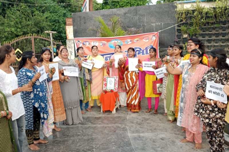 सोमवार को राष्ट्र वंदन मातृशक्ति परिषद की कार्यकर्ताओं द्वारा पश्चिम बंगाल के कोलकाता में विगत दिनों बर्बरता पूर्वक ढंग से ट्रेनिंग डॉक्टर की हत्या और दुष्कर्म के विरोध में आज महानगर के शास्त्री चौराहे पर पश्चिम बंगाल की सरकार को चूड़ियां दिखाते हुए उनके बर्खास्तगी की मांग की।