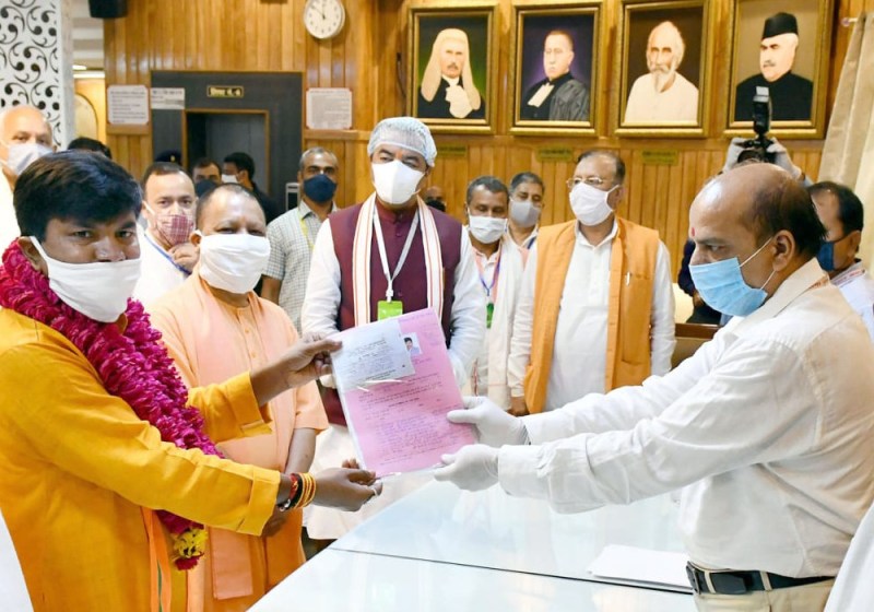 लखनऊ. समाजवादी पार्टी (Samajwadi Party) के नेता बेनी प्रसाद वर्मा (Beni Prasad Maurya) के निधन से खाली हुई यूपी से राज्यसभा सीट पर उपचुनाव (Rajyasabha upchunav) होने हैं। इसके लिए गुरुवार को भारतीय जनता पार्टी (BJP) के प्रत्याशी जयप्रकाश निषाद (Jayprakash Nishad) ने सीएम योगी (CM Yogi ) व समस्त बड़े नेताओं की मौजूदगी में अपना नामांकन दाखिल किया। राज्यसभा उपचुनाव 24 अगस्त को होना है। आज नामांकन दाखिल करने की अंतिम तारीख थी। राज्यसभा नामांकन के दौरान सीएम योगी, उप मुख्यमंत्री केशव प्रसाद मौर्य, सुरेश खन्ना, सूर्य प्रताप शाही, स्वामी प्रसाद मौर्य, जेपीएस राठौर और विजय बहादुर पाठक सहित कई नेता भी मौजूद रहे। सभी ने विधानसभा अध्यक्ष हृदय नारायण दीक्षित के कार्यालय में उनसे शिष्टाचार भेंट की। जयप्रकाश निषाद ने सभी की मौजूदगी में अपना नामांकन दाखिल किया व सीएम योगी का आशीर्वाद भी लिया। इस दौरान विधानसभा अध्यक्ष ने मुख्यमंत्री व मंत्रीगणों को पुस्तक भी भेंट की। जयप्रकाश निषाद का निर्विरोध चुनाव जीतना तय माना जा रहा है। उनका कार्यकाल मई 2022 तक रहेगा।