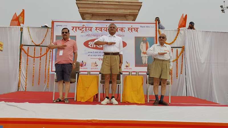 राष्ट्रीय स्वयं सेवक संघ की ओर से गोरखपुर स्थित महंत दिग्विजयनाथ पार्क में बाबा साहब डा. भीमराव अंबेडकर की जयंती पर शाखा संगम आयोजित किया गया। शाखा संगम में उपस्थित स्वयं सेवकों को संबोधित करते हुए गोरक्ष प्रांत के प्रांत प्रचारक रमेश ने कहा कि डा. भीमराव अंबेडकर का पूरा नाम डा. भीमराव रामजी अंबेडकर था। लेकिन वामपंथियों एवं राष्ट्रद्रोही लोगों को प्रभु श्रीराम के नाम से इतनी घृणा हो गई कि उनके नाम से भगवान राम का नाम निकालकर बाहर कर दिया।