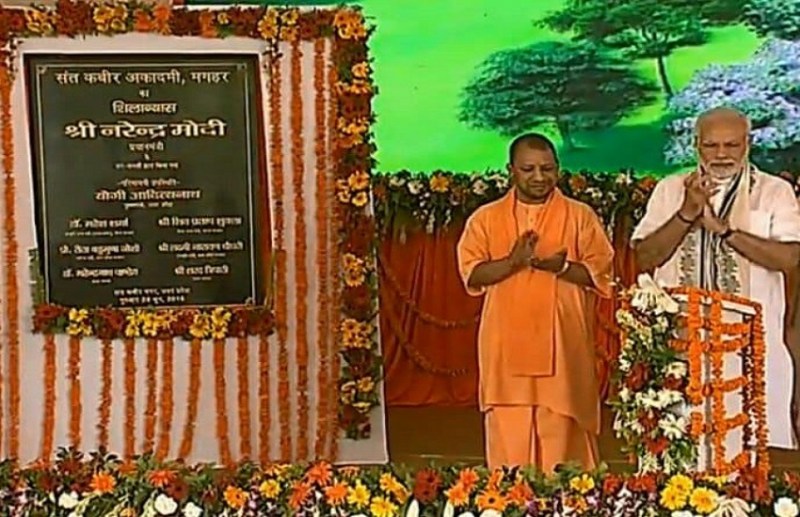 गोरखपुर. पीएम नरेन्द्र मोदी गुरुवार को मगहर पहुंच चुके हैं। पीएम नरेन्द्र मोदी ने सबसे पहले संत कबीर के समाधि स्थल व मजार पर चादर चढ़ायी है और फिर संत कबीर अकादमी का शिलान्यास किया है। पीएम मोदी के जनसभा के लिए वहां पर भारी भीड़ जमा हो चुकी है।