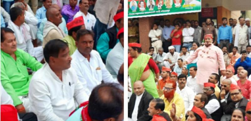 पूर्व निधारित कार्यक्रम के अनुसार गोरखपुर सदर तहसील मुख्यालय केे साथ जिले की हर तहसील मुख्यालय पर सपाइयों ने धरना दिया। गोरखपुर सदर तहसील पर धरना देने के लिए सपाई पार्टी कार्यालय पर एकत्र हुए। यहां से जुलूस की शक्ल में मुख्यालय पर पहुंचे।