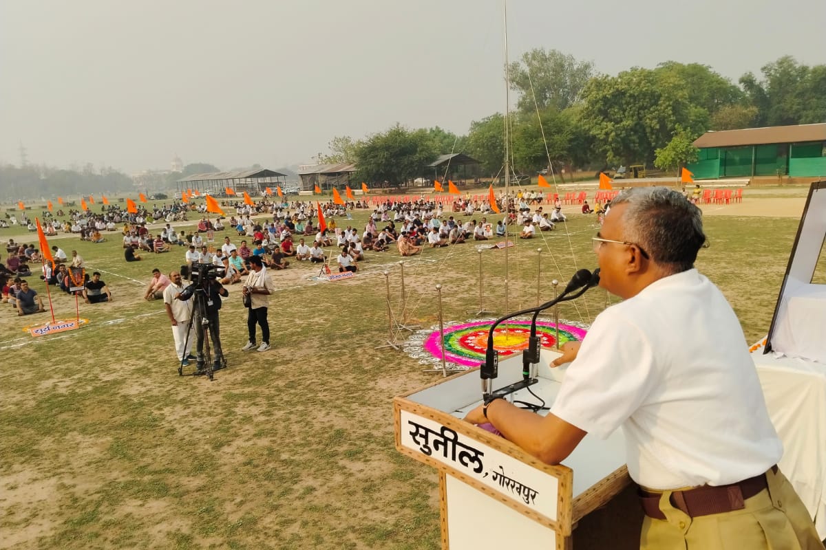 राष्ट्रीय स्वयंसेवक संघ गोरखपुर महानगर उत्तर भाग द्वारा शाखा महाकुंभ का दिव्य-भव्य आयोजन रानी लक्ष्मी बाई क्रीड़ांगन फर्टिलाइजर में संपन्न हुआ। राष्ट्रीय स्वयंसेवक संघ प्रांत प्रचारक रमेश जी ,प्रांत संघचालक डॉ महेंद्र अग्रवाल जी, भाग संचालक भानु प्रताप जी ने भारत माता की चित्र पर दीप प्रज्ज्वलित, पुष्प अर्पित कर कार्यक्रम का शुभारंभ किया। शाखा महाकुंभ में एक ही मैदान में उत्तर भाग के 10 नगर के 92 बस्तियों में संचालित 87 शाखाएं अलग अलग लगी, जिसमें हर आयु के कुल 1455 स्वयंसेवक सम्मिलित हुए।