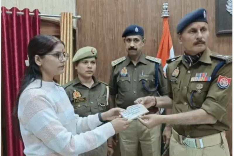 फोटो सोर्स: पत्रिका, मोबाइल धारक को बरामद मोबाइल देते SP