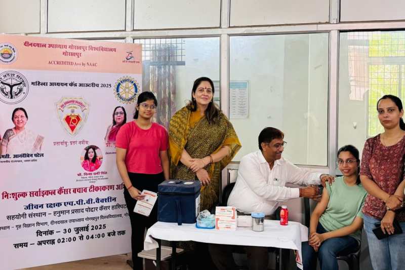 महिला अध्ययन केंद्र ,दीनदयाल उपाध्याय गोरखपुर विश्वविद्यालय, एवं हनुमान प्रसाद पोद्दार कैंसर हॉस्पिटल, गोरखपुर के संयुक्त- तत्वाधान के द्वारा जीवन रक्षक एच.पी.वी (ह्यूमन पेपिलोमा वायरस) वैक्सीन लगाने का, कार्यक्रम आयोजित किया गया जिसका विषय "निशुल्क सर्वाइकल कैंसर बचाओ टीकाकरण अभियान" रहा।