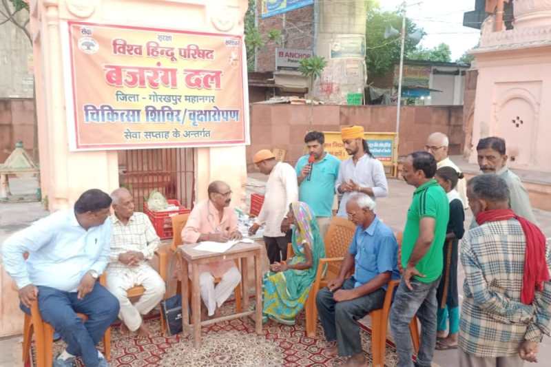 विश्व हिंदू परिषद के युवाओं की शाखा बजरंग दल द्वारा पूरे भारतवर्ष में सेवा सप्ताह के अंतर्गत चिकित्सा शिविरों का आयोजन किया जा रहा है।इसी क्रम में विश्व हिंदू परिषद बजरंग दल गोरखपुर इकाई की ओर से सात दिवसीय स्वास्थ्य परीक्षण शिविर का आयोजन किया गया। जो गोरखपुर महानगर के विभिन्न स्थानों पर खास कर सेवा बस्तियों में आयोजित किया जाएगा यह शिविर 30 जून तक चलेगा। आज के शिविर का उद्घाटन गोरखपुर के प्रसिद्ध सर्जन डॉ जेपी जायसवाल एवं विश्व हिंदू परिषद के प्रांत कोषाध्यक्ष ऑर्थोपेडिक सर्जन डॉ आरपी शुक्ला डॉ भूपेंद्र सिंह द्वारा संयुक्त रूप से किया गया।