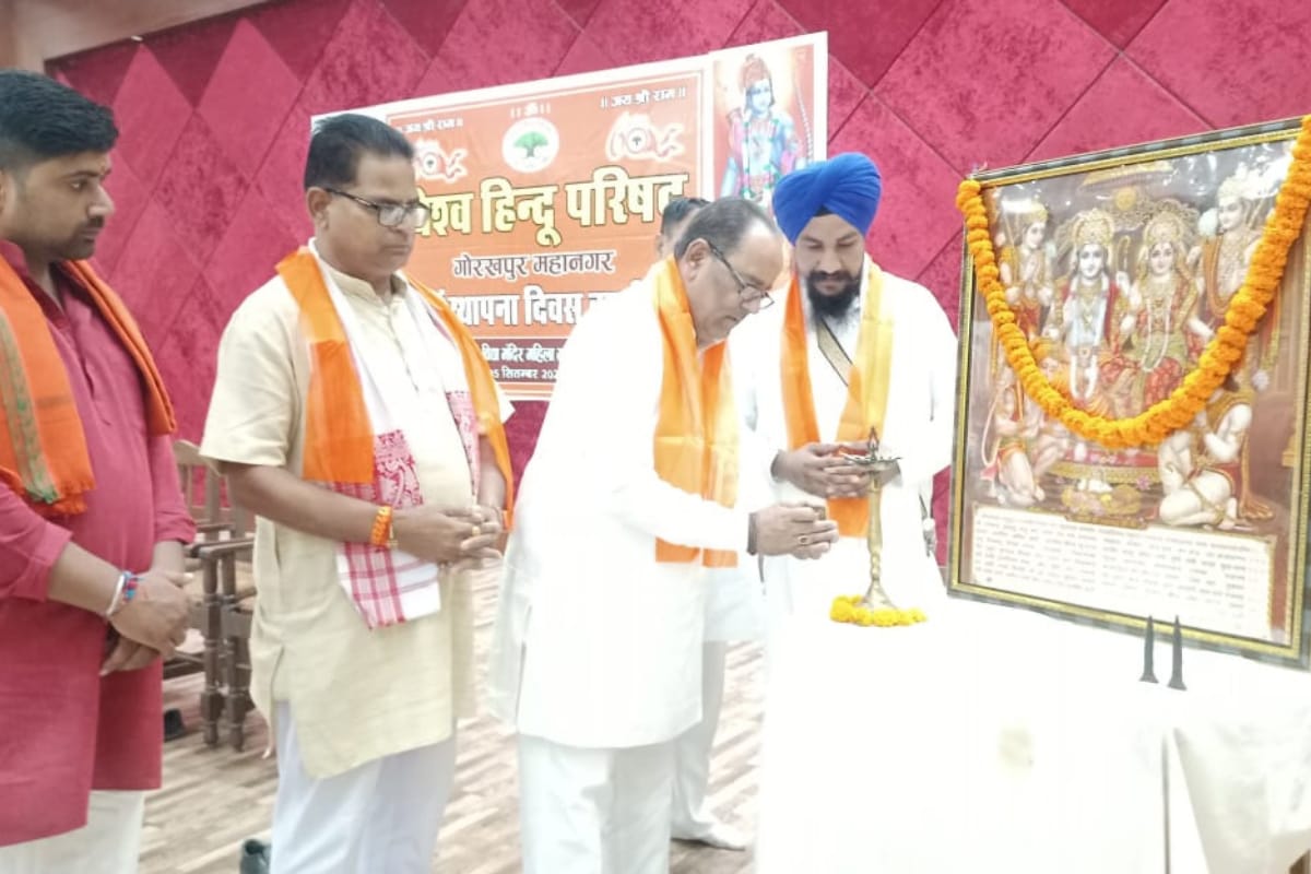 गुरुवार को विश्व हिंदू परिषद गोरखपुर महानगर के उत्तरी एवं दक्षिणी जिले के द्वारा संयुक्त रूप से विश्व हिंदू परिषद का स्थापना दिवस महानगर स्थित सरस्वती विद्या महिला महाविद्यालय के सभागार में आयोजित किया गया। कार्यक्रम में मुख्य रूप से सिख समाज के संत ज्ञानी राज सिंह, विश्व हिंदू परिषद के प्रांत संगठन मंत्री राजेश, क्षेत्र धर्म प्रसार प्रमुख प्रदीप पांडेय, प्रांत मंत्री नागेंद्र सिंह, राम अधार,जिला अध्यक्ष विष्णु प्रताप सिंह द्वारा श्री राम दरबार के सम्मुख दीप प्रज्वलंकर कार्यक्रम का विधिवत शुभारंभ किया गया।