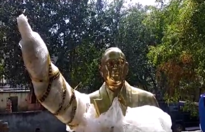 ग्रेटर नोएडा. बिसरख कोतवाली एरिया के रिछपाल गढ़ी गांव में गुरुवार रात अराजक तत्वों ने बाबा साहेब डॉक्टर भीमराव आंबेडकर की प्रतिमा को क्षतिग्रस्त कर दिया था। आंबेडकर जयंती से ठीक एक दिन पहले हुई घटना से गांव व आस-पास के एरिया में तनाव फैल गया। तनाव को देखते हुए गांव में भारी पुलिसबल तैनात किया गया था। आंबेडकर की प्रतिमा क्षतिग्रस्त होने के बाद में लोगों में रोष व्याप्त हो गया। सूचना मिलने पर पहुंचेे पुलिस और प्रशासन के अधिकारियों ने लोगों को समझा-बुझाकर शांत कराया और दूसरी प्रतिमा स्थापित करने का आश्वासन दिया था। प्रशासन की तरफ से आंबेडकर की पीतल की प्रतिमा लगाई गई।