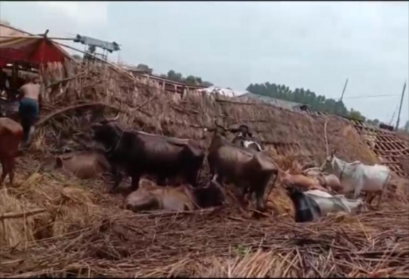 ग्रेटर नोएडा। जेवर तहसील के रबूपुरा स्थित फलैदा बांगर गांव में शनिवार को बारिश के चलते अचानक गाैशाला की दीवार और छज्जा गिर गया। इसका पता लगते ही हड़कंप मच गया। वहीं दीवार और छज्जे में के नीचे दबने से पांच गोवंश की मौत हो गई। जबकि 17 गोवंश जख्मी हो गए। उनका इलाज किया जा रहा है। इससे पूर्व बीमारी से तीन गोवंश की मौत हो गई थी। जिनका अंतिम संस्कार अभी नहीं किया गया था। घटना की सूचना पाकर जिला, तहसील प्रशासन और यमुना प्राधिकरण के अफसर मौके पर पहुंच गये। जिन्होंने जख्मी गोवंशों के इलाज के लिए डॉक्टरों को बुलाया। इसके साथ ही डीएम ने मामले की जांच एडीएम वित्त के नेतृत्व में जांच के आदेश दिए हैं।