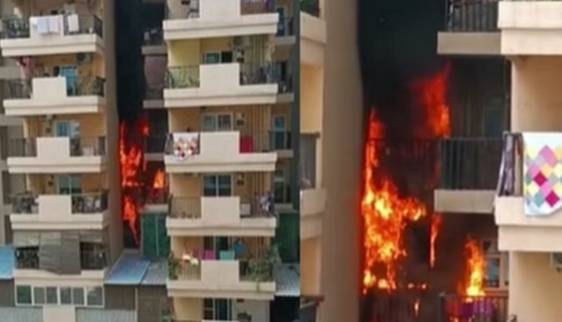 ग्रेटर नोएडा के गौर सिटी 14 एवेन्यू में लगी आग।