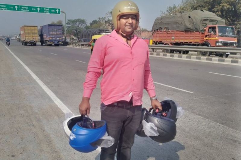 ग्रेटर नोएडा के रहने वाले और हेलमेट मैन के नाम से मशहूर राघवेंद्र कुमार 56 हजार से ज्यादा हेलमेट अब तक बांट चुके हैं। ये सब उनके लिए बहुत आसान नहीं रहा है। अपनी इस मुहिम के लिए उन्होंने नौकरी छोड़ दी। जो जमा पूंजी थी, वो खत्म हो गई। इसके बाद ग्रेटर नोएडा का अपना घर इस नेक काम के लिए बेच दिया।