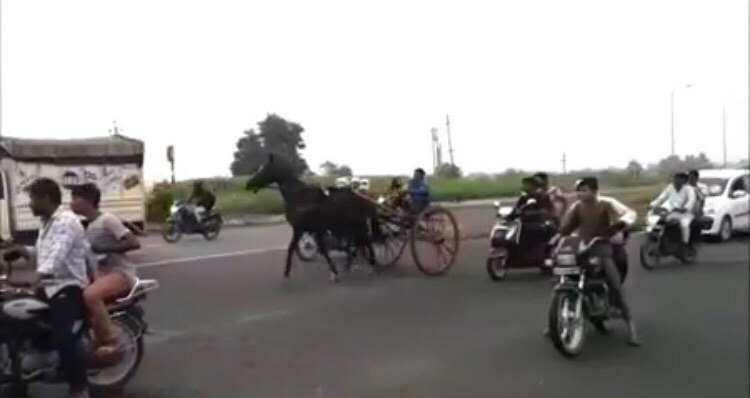 दरअसल, मामला मंगलवार की सुबह का है। जहां पर एक्सप्रेस वे पर कुछ लोगों ने घोड़ों की रेस करवा दी। गाड़ियों के बीच दौड़ते घोड़े भले ही लोगों को रोमांचित कर रहे थे लेकिन ये किसी बड़े हादसे को दावत देने के लिए काफी था। घोड़ों की इस रेस ने न केवल लोगों के लिए खतरा बढ़ाया बल्कि पुलिस के पेट्रोलिंग की पोल भी खोल दी। क्योकि 10 किलोमीटर की रेस में कोई पुलिस पेट्रोलिंग नज़र नहीं आई। न ही किसी इस रेस को रोकने की भी कोशिश भी नहीं की। जब इस रेस का वीडियो वायरल होने लगा तब पुलिस जागी।