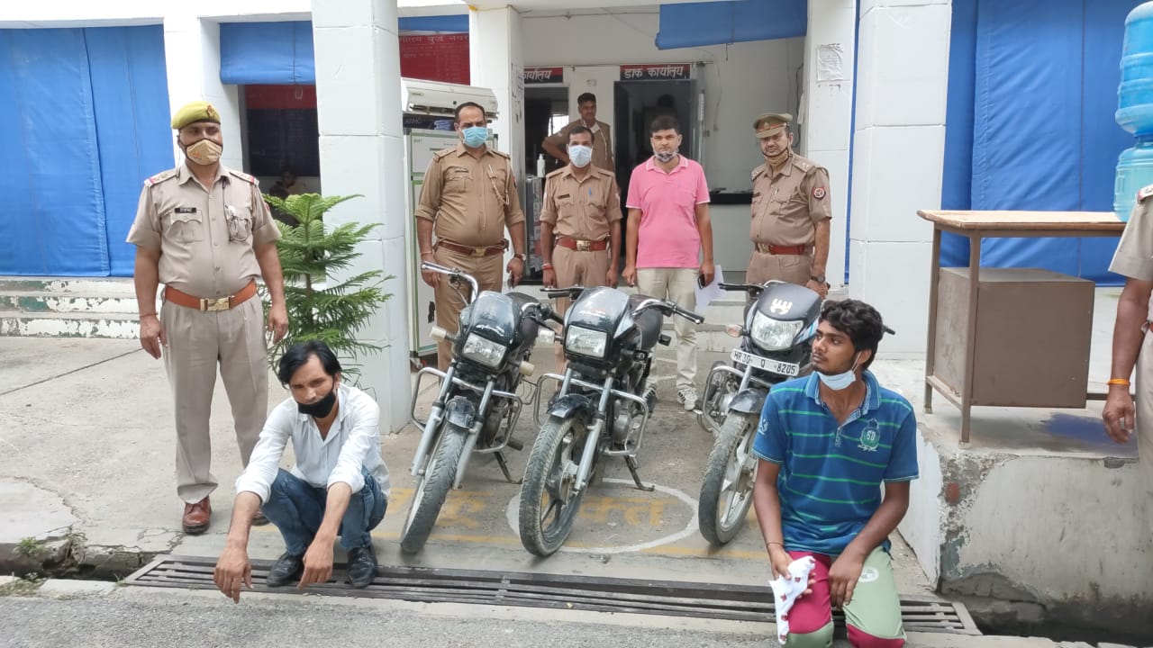 ग्रेटर नोएडा। पुलिस ने दो लोगों को गिरफ्तार कर उनसे फर्जी नंबर प्लेट लगी चोरी की तीन मोटरसाइकिल बरामद की हैं। पुलिस का दावा है कि यह एक गिराेह है जाे शहर से महंगी बाइक चाेरी कर उन्हे सस्ते दाम में देहात क्षेत्र में बेच देता है। आरोपित महज पांच हजार में चोरी की मोटरसाइकिल बेचते थे। पुलिस गिरोह में शामिल अन्य बदमाशों की तलाश कर रही है।