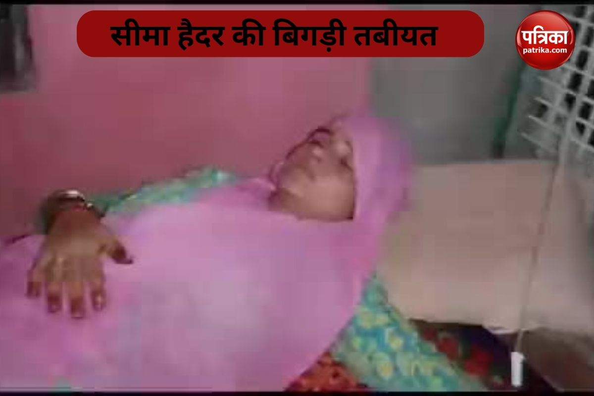 Seema Haider: सीमा हैदर और सचिन मीणा की प्रेम कहानी इन दिनों चर्चा में है। हर कोई सीमा हैदर के बारे में जानना चाहता है। एटीएस सीमा हैदर पर नजर बनाए हुए है और लगातार पूछताछ कर रही है। इसी बीच आज सोशल मीडिया पर एक वीडियो सामने आया। इसमें देखा जा सकता है कि सीमा हैदर की तबीयत खराब है। वह बेड पर लेटी हुईं हैं और उन्हें ग्लूकोज चढ़ रहा है।