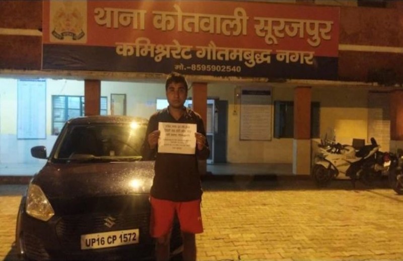 डीसीपी सेंट्रल नोएडा हरीश चंद्र ने बताया कि सूरजपुर कोतवाली की पुलिस दुर्गा गोल चक्कर पर वाहनों की चेकिंग कर रही थी। इसी बीच ट्रैफिक सिपाही वीरेंद्र ने कार को जांच करने के लिए रोका। उन्होंने जब कागज की जांच-पड़ताल की तो पता चला कि गाड़ी पर फर्जी नंबर प्लेट लगी थी। इसी बीच ट्रैफिक सिपाही गाड़ी में बैठ गया और चालक को थाने चलने के लिए कहने लगा। आरोपी चालक ने थाने जाने के जगह पीछे बैठे ट्रैफिक सिपाही का अपहरण कर लिया और उसे कार सहित ले भागा। उसको अजायबपुर चौकी क्षेत्र के जंगल में फेंक कर फरार हो गया।