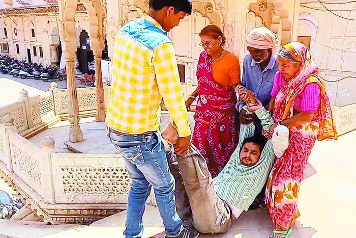 हालात ये हैं कि युवक को 4 लोग उठाकर रिक्शे में बैठाते हैं। उतरने के बाद वह जमीन में रेंगता हुआ सरकारी कार्यालय पहुंचता है, लेकिन दुत्कार कर भगा दिया जाता है। 32 वर्षीय राहुल दिमाग से कमजोर है और विकलांग है।