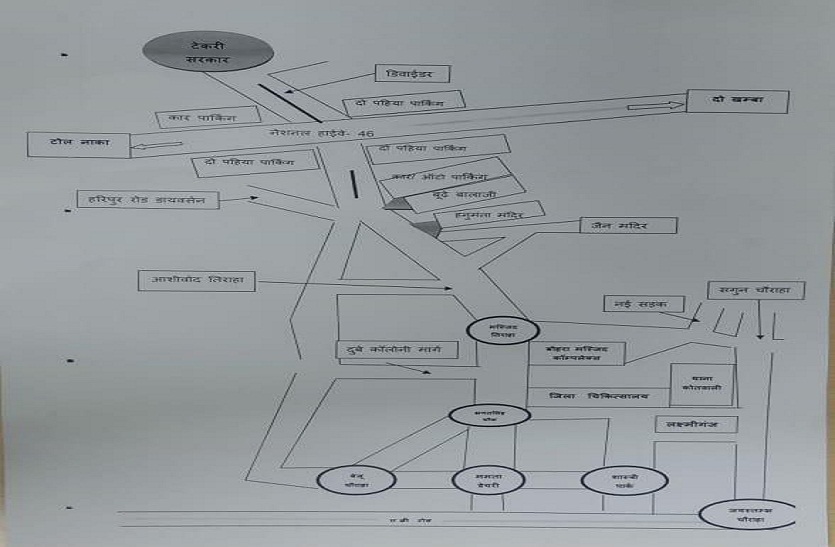 चार पहिया हल्के वाहन जो भोपाल, इंदौर की तरफ से आकर शिवपुरी, ग्वालियर की ओर जाना चाहते हैं, उन्हें आवश्यकता पड़ने पर (बायपास पर ट्रैफिक अधिक होने की स्थिति में) बायपास रोड के स्थान पर टोल नाके से शहर में डायवर्ट कर चिंताहरण मंदिर, कुशमोदा चौकी, जज्जी बस स्टैंड, हनुमान चौराहा, नानाखेड़ी, दो खम्बा होते हुए डायवर्सन किया जाएगा ।