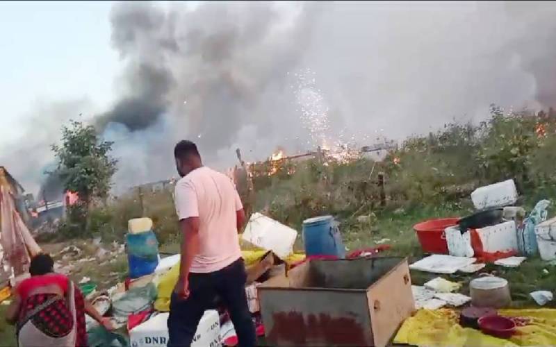 घटना शाम करीब साढ़े पांच बजे की है जब मारकी महू में हर शनिवार को लगने वाले हाट बाजार के पास ही लगे पटाखा बाजार में अचानक आग लग गई। आग इतनी तेजी से फैली की कुछ ही देर में पूरे पटाखा बाजार के साथ ही पास के हाट बाजार की दुकानों को भी अपनी चपेट में ले लिया। बाजार में आग लगते ही भगदड़ मच गई। घटना का पता चलते ही फायर बिग्रेड न होने के कारण पानी के टैंकरों से पानी का डालकर आग पर करीब आधे घंटे की मशक्कत के बाद काबू पाया गया। आग से 40 दुकानें जलकर राख हो गईं। इस अग्रिकांड से 4० से 5० लाख रुपए का नुकसान हुआ है।