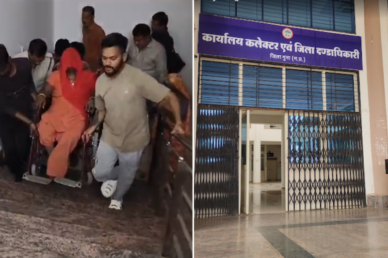 Guna News : सरकारी अफसर को जनता की सेवा के लिए नियुक्त किया जाता है। लेकिन गुना में एक ऐसा मामला सामने आया है कि जिसने अफसरशाही की हैरान करने वाली तस्वीरें उजागर की है। दरअसल पति की मौत के सिलसिले में कलेक्ट्रेट गई विकलांग महिला से मिलने कलेक्टर साहब नीचे नहीं आए। इस वजह से कुछ लोग विकलांग महिला को व्हीलचेयर के साथ सीढ़ियों से कलेक्टर के पास ले जाना पड़ा।