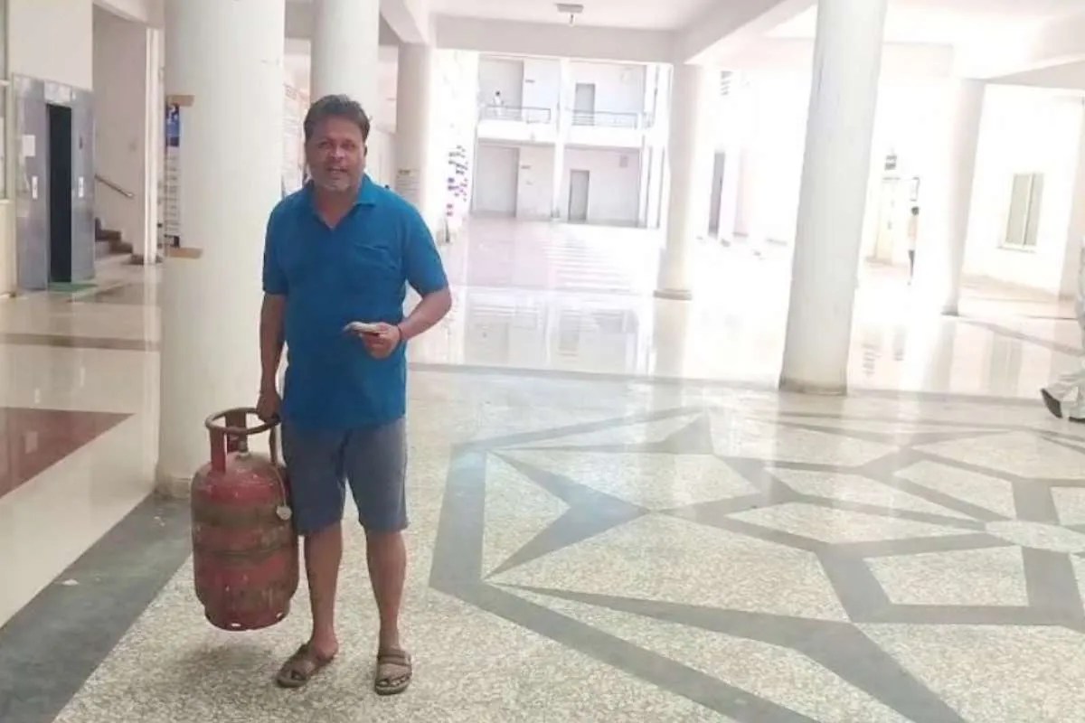 man empty lpg cylinder jansunwai gas delivery delay (source-patrika)