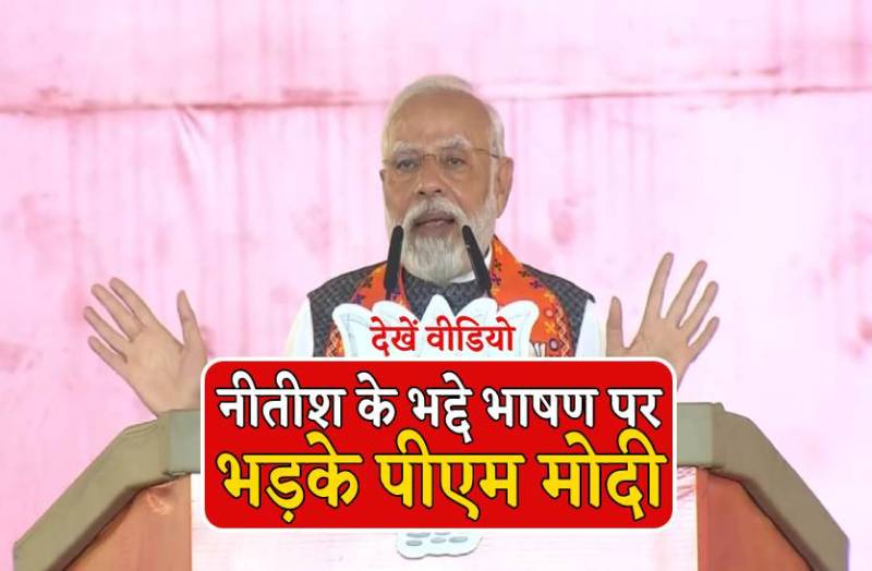 नीतीश कुमार के बयान को लेकर पीएम मोदी ने जमकर नाराजगी जाहिर की। उन्होंने गुना में चुनावी मंच से साफ साफ कहा कि जिस तरह की भाषा नीतीश कुमार ने बोली वो बेहद अशोभनीय, दुर्भाग्यपूर्ण और अकल्पनीय है और इंडी एलायंस, घमंडिया गठबंधन के लोग एक शब्द नहीं बोल रहे हैं। इन्हें शर्म आनी चाहिए। ये देश का कैसा दुर्भाग्य आया है, कितने नीचे गिरोगे। दुनियाभर में देश की बेइज्जती कर रहे हो। जो लोग महिलाओं के बारे में ऐसा सोचते हैं, क्या वे आपके लिए कुछ अच्छा कर सकते हैं?