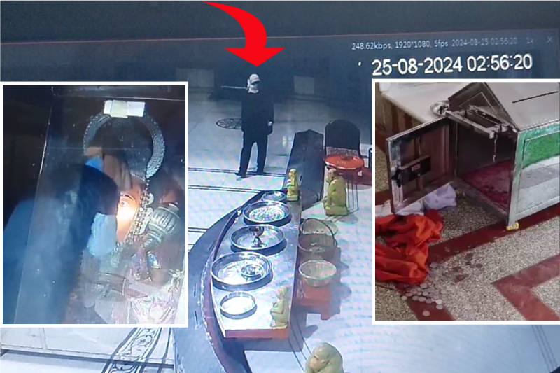 मिली जानकारी के अनुसार, शहर में स्थित हनुमान टेकरी मंदिर में इस बार 6 नकाबपोश चोरों ने चोरी की वारदात को अंजाम दिया है। बदमाशों ने पहले तो टेकरी मंदिर की सुरक्षा में तैनात दो सुरक्षाकर्मियों में से एक बाबू सिंह यादव को चाकू की नोक पर बंधक बना लिया। जबकि दूसरे गार्ड शिशुपाल यादव को पीछे बनी पानी की टंकी के पास पेड़ से बांधकर बैठा दिया। इसके बाद 6 में से पांच चोर सुरक्षाकर्मियों के सामने ही खड़े हो गए, जबकि एक नकाबपोश चोर पिछले गेट से मंदिर में घुसा। इस घटना का एक सीसीटीवी भी सामने आया। इसमें खास बात ये देखने को मिली कि, मंदिर में घुसे चोर ने पहले तो भगवान के सामने हाथ जोड़कर प्रणाम किया। फिर उसी मूर्ति के आभूषण उतार लिए। यही नहीं चोर ने इसके बाद मंदिर की दान पेटी में रखे कीमती सामान समेत नगदी चुराकर फरार हो गए।