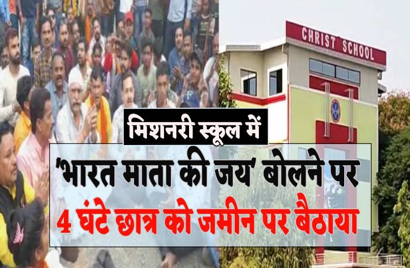 मामला शहर के क्राइस्ट स्कूल का है। बताया गया है कि स्कूल में पढ़ने वाले 7वीं क्लास के छात्र ने स्कूल में हुई प्रेयर के बाद 'भारत माता की जय' का नारा लगा दिया। छात्र के नारा लगाते ही स्कूल के टीचर्स भड़क गए और उसे 4 पीरियड करीब 4 घंटे तक जमीन पर बैठने की सजा दी। सजा देने के साथ ही टीचर्स ने बच्चे को डराया धमकाया भी। करीब 4 घंटे तक बच्चा स्कूल में जमीन पर ही बैठा रहा और इसके बाद घर पहुंचा तो खुद को एक कमरे में बंद कर लिया। किसी तरह परिजन ने उसे विश्वास में लिया और उससे बात की तो उसने स्कूल में हुई पूरी घटना के बारे में परिजन को बताया। जिसके बाद बच्चे के माता पिता,हिंदू संगठनों के साथ स्कूल पहुंचे और स्कूल के बाहर जमकर हंगामा किया। स्कूल के बाहर हंगामे की खबर लगते ही पुलिस प्रशासन के अधिकारी मौके पर पहुंचे और लोगों को समझाने का प्रयास किया लेकिन प्रदर्शन कर रहे लोग स्कूल के टीचर्स के खिलाफ FIR की मांग पर अड़े रहे जिसके कारण पुलिस ने दो टीचर्स के खिलाफ मामला दर्ज किया है।