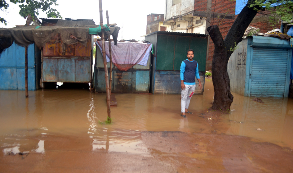 म्याना. रात में ११ बजे से शुरू हुई बारिश सुबह तक जारी रही। जिससे टकनेरा रोड बस्ती में पानी भर गया। घरों व दुकानों में भरे पानी को लोगों ने पंप की सहायता से बाहर फेंका। जिनके पास पंप नहीं था, उनका पूरा परिवार बर्तनों में पानी भर-भर कर फैंकता रहा। यहां ओवर ब्रिज बनने के बाद सर्विस रोड व नाले का निर्माण किया गया था। लेकिन बस्ती के पानी की निकासी की कोई व्यवस्था नहीं की गई। जिसके कारण बारिश मेें यहां के लोगों को बाढ़ जैसे हालातों का सामना करना पड़ रहा है। बस्ती में राजू सेन का कच्चा मकान गिर गया। गनीमत रही कि वे आगे वाले कमरे में सो रहे थे। वरना जनहानि भी हो सकती थी। मकान गिरने से उनके खाने-पीने का सारा सामान व कपड़े खराब हो गए।