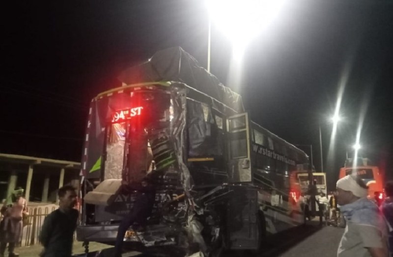 गुना. जिले के म्याना क्षेत्र में अलसुबह इंदौर से ग्वालियर जा रही राइन बस में एक ट्रक ने इतनी तेजी से टक्कर मारी कि जिससे बस के अंदर ऊपर की सीट पर सो रहे लोग सीट से नीचे आकर गिरे।