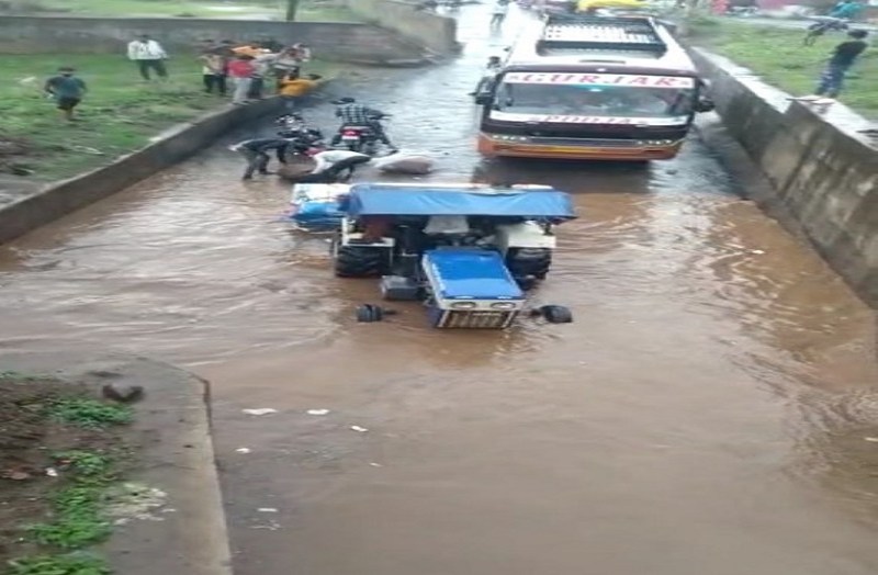 रेलवे के अंडरब्रिज में भरा पानी, म्याना में फंसी एंबुलेंस को ट्रैक्टर से निकाला गया, लगा जाम