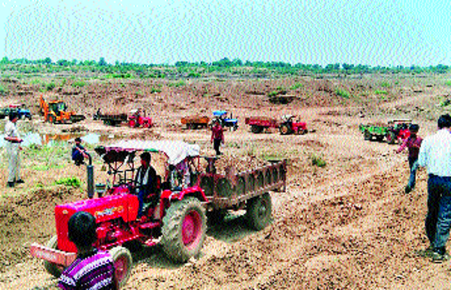 ट्रैक्टर-ट्रालियों को जब्त किया गया।