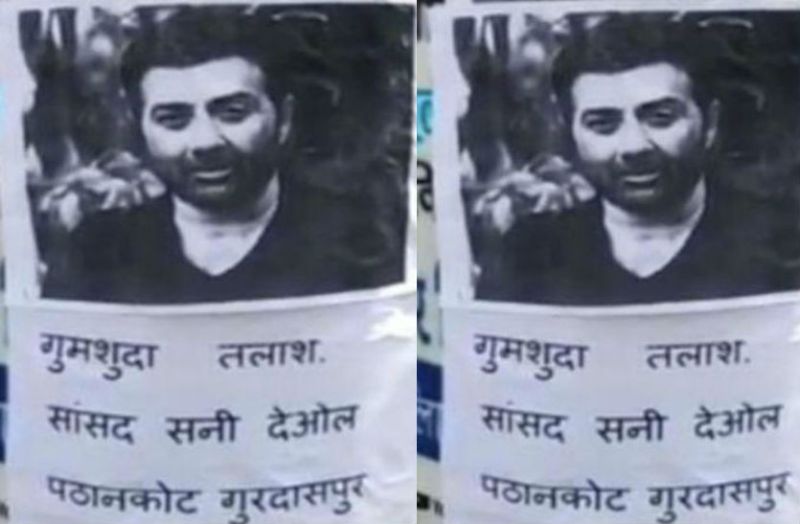 विरोधी पार्टी के कांग्रेसी नेता-कार्यकर्ता लोगों से पूछ रहे थे कि इन्हें कहीं देखा है क्या। कांग्रेसियों ने कुछ पोस्टर पठानकोट जिले में यहां-वहां चिपकाए भी गए हैं। पठानकोट की सड़क पर नजर आया नजारा नया नहीं है। इससे पहले भी दो बार पठानकोट में सांसद सनी देओल की गुमशुदगी के पर्चे छपवाकर दीवारों पर लगा दिए गए थे।