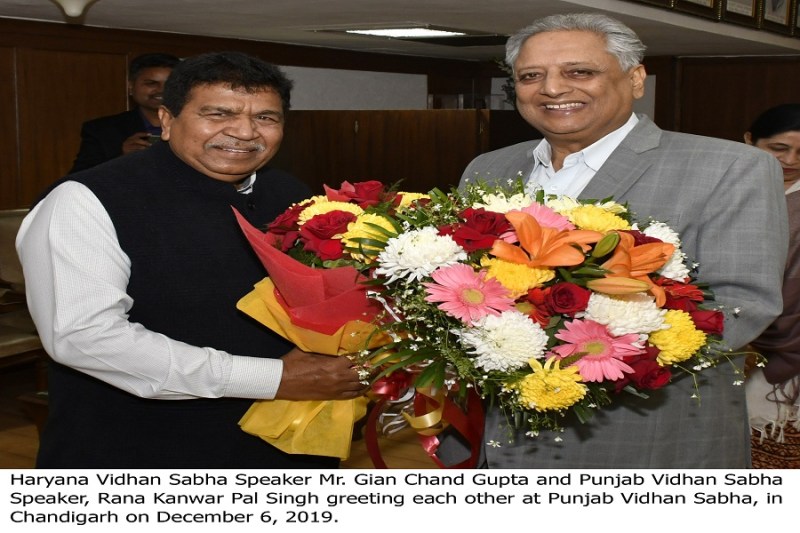 (चंडीगढ़). हरियाणा विधानसभा के स्पीकर ज्ञान चंद गुप्ता ने पंजाब विधानसभा के स्पीकर केपीएस राणा के साथ शुक्रवार को मुलाकात कर पंजाब विधानसभा में हरियाणा का हिस्सा मांग लिया है। हरियाणा का दावा है कि पंजाब ने हरियाणा के हिस्से के बीस कमरों पर कब्जा कर रखा है। यह करीब चार हजार वर्ग फीट जगह है।